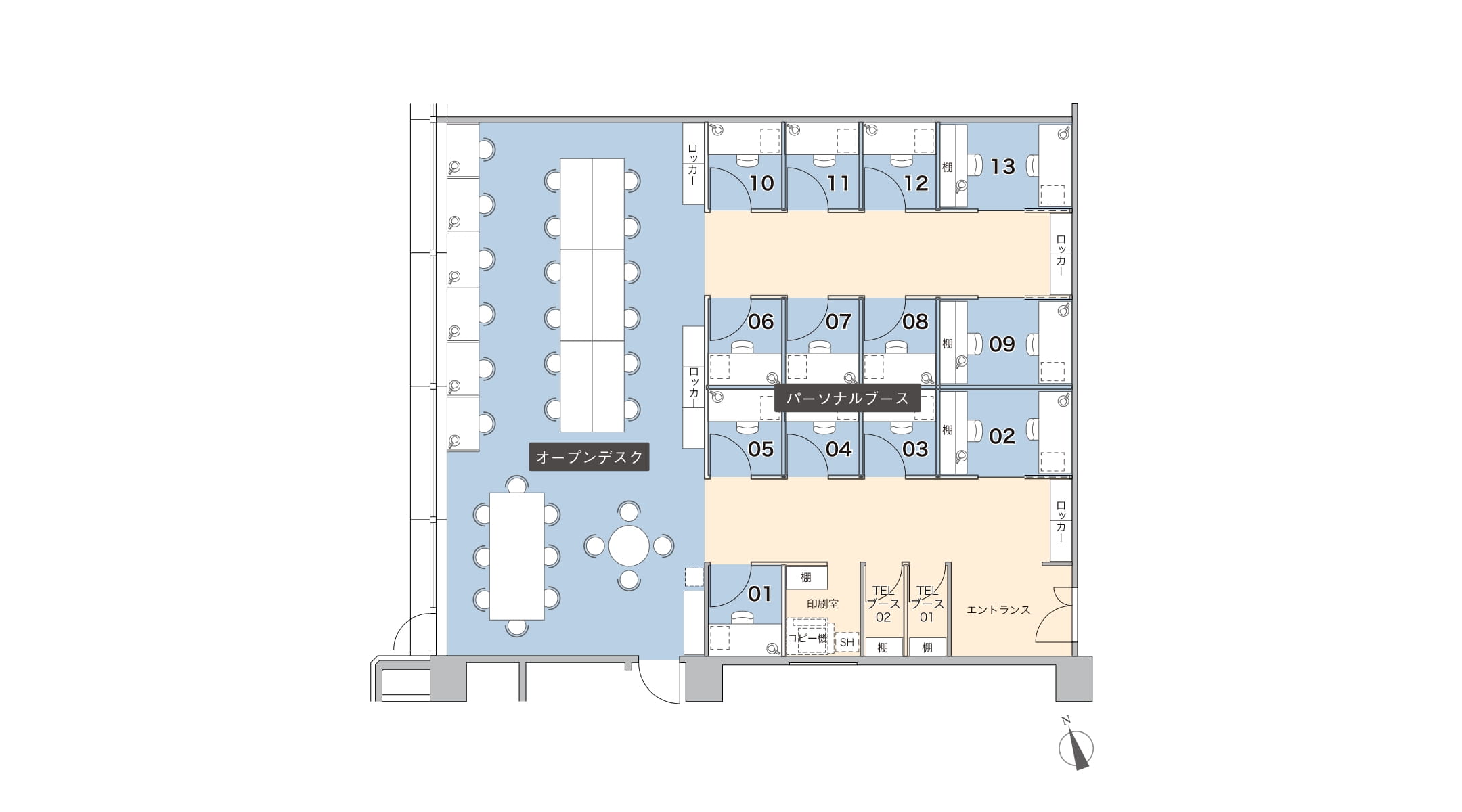 부담없이 이용하기 쉬운 오픈인 1명용 자리입니다. 자리는, 자유롭게 선택하실 수 있으므로 집중하기 쉬운 벽 옆 자리도 준비하고 있습니다.