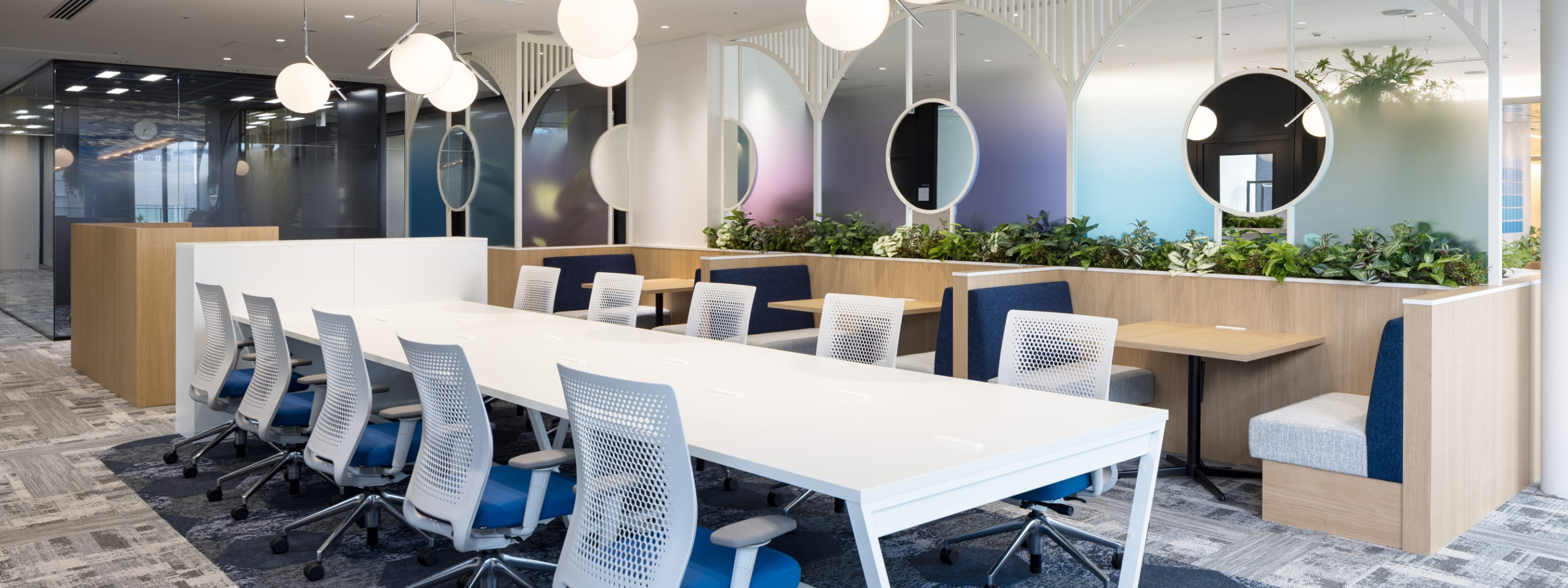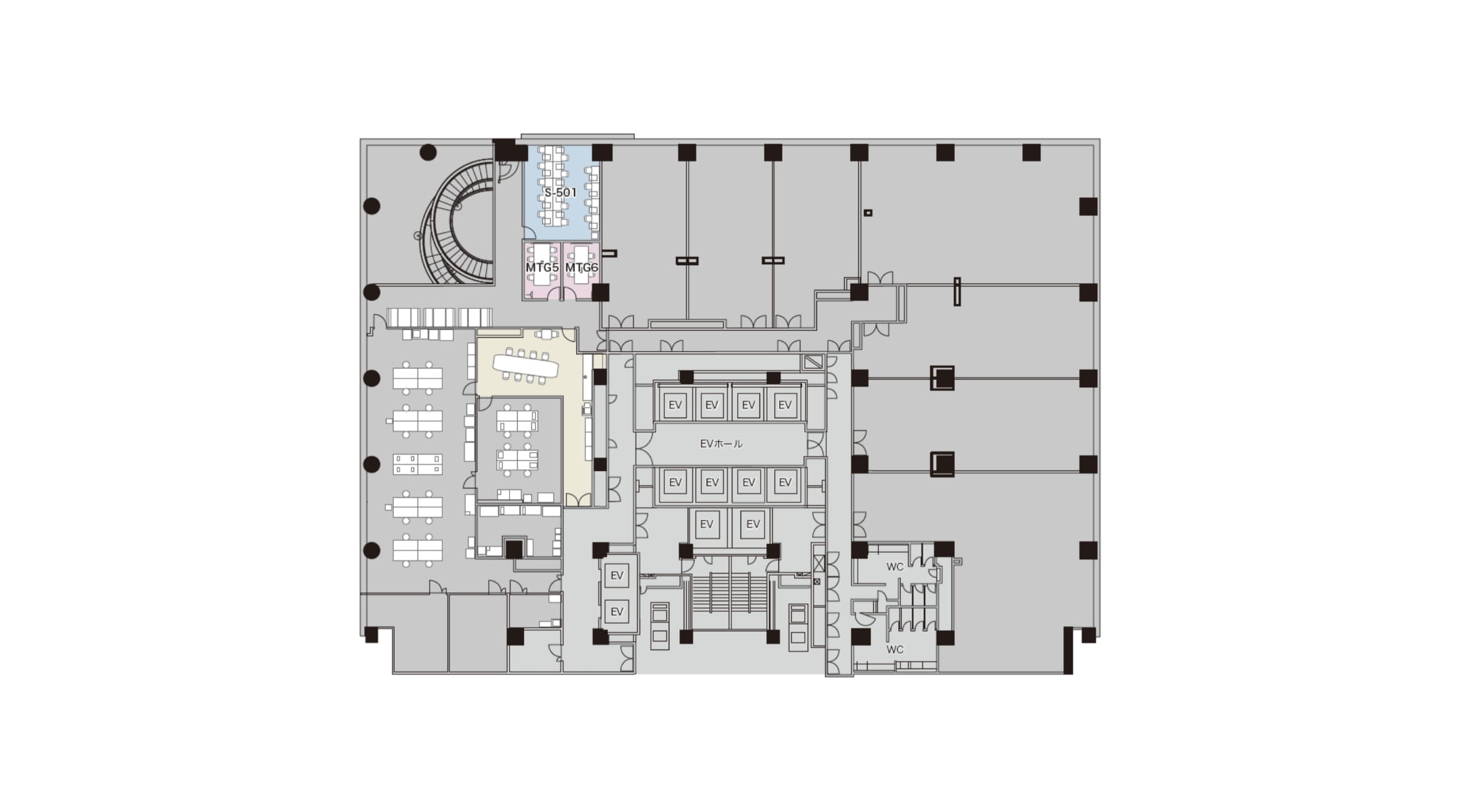 미쓰이 링크 랩 나카노시마의 엔트런스와 임대실 앞에 회사명 표기가 가능합니다.